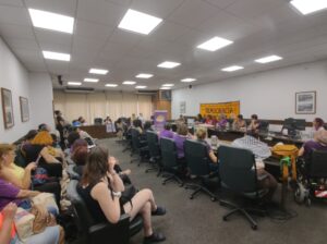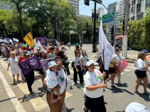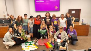 Também foi inaugurada a exposição “Mulheres em Movimento: Memória e Resistência” que ficará exposta até 30 de outubro de 2025 no saguão de entrada da Câmara Municipal. Além de fotografias, a exposição reúne faixas, cartazes e outros materiais que resgatam a memória coletiva das lutas feministas, compondo um espaço de reconhecimento e celebração da resistência.