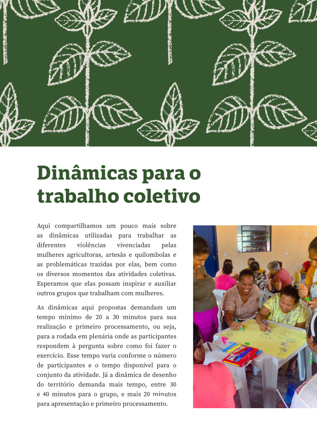 A publicação apresenta os território e as vozes das mulheres que compartilharam suas vivências e análises sobre a violência sexista, as metodologias e dinâmicas utilizadas nos grupos e os resultados e recomendações que emergiram do processo. Mais do que um registro, esta cartilha é uma ferramenta de formação e mobilização, construída a muitas mãos, que reafirma a importância de fortalecer a autonomia das mulheres e de criar territórios livres de violência.