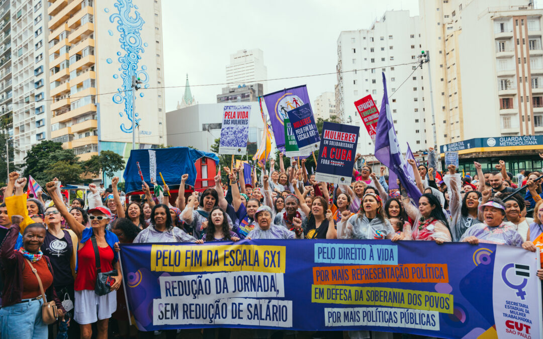 O documento pauta o enfrentamento às violências sistêmicas às quais as mulheres são submetidas; o fim da escala de trabalho 6×1, com a defesa da reorganização e socialização do trabalho doméstico e de cuidados na sociedade; e a reivindicação urgente por um basta nos casos de feminicídio, lesbocídio e transfeminicídio.